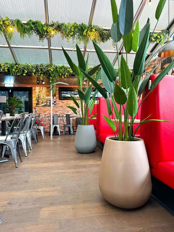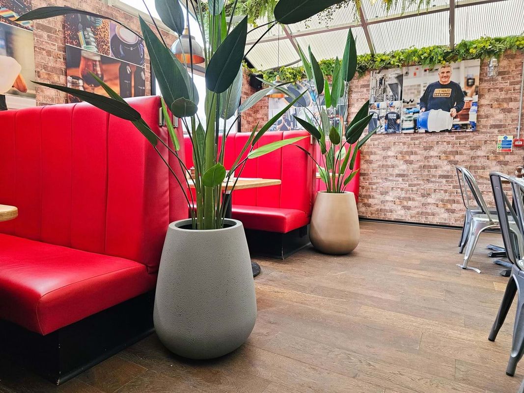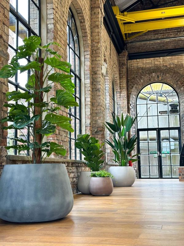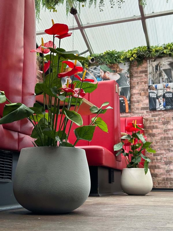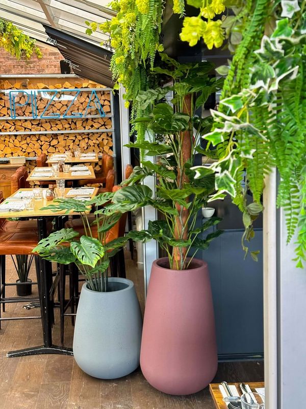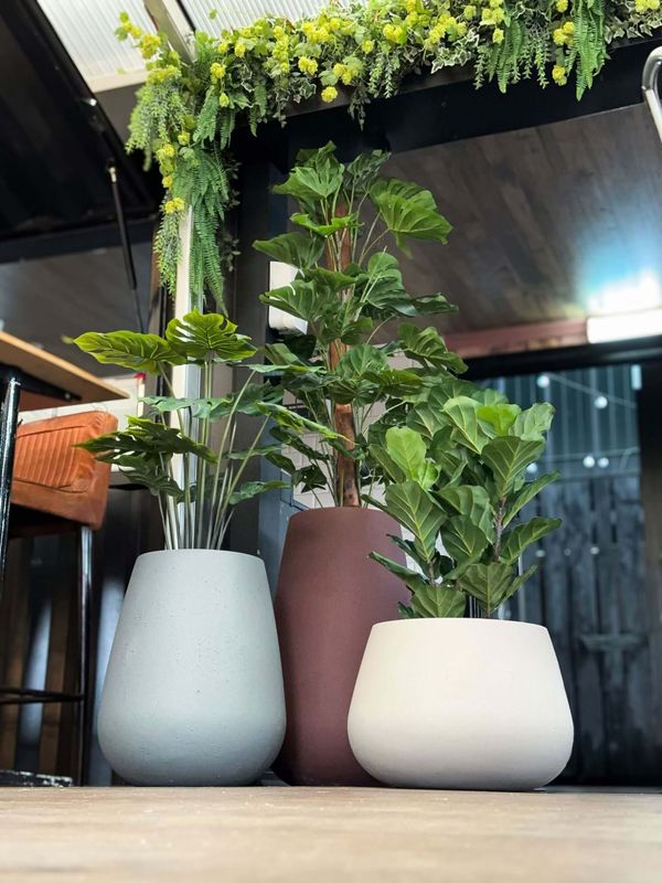 3-sizes of Divona fibreglass planters in Dark-Grey, Light-White and Dark-Brown