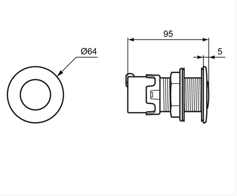 Conceala 3 Flush Buttons - Crescent finger push button, pneumatic dual flush dimensions