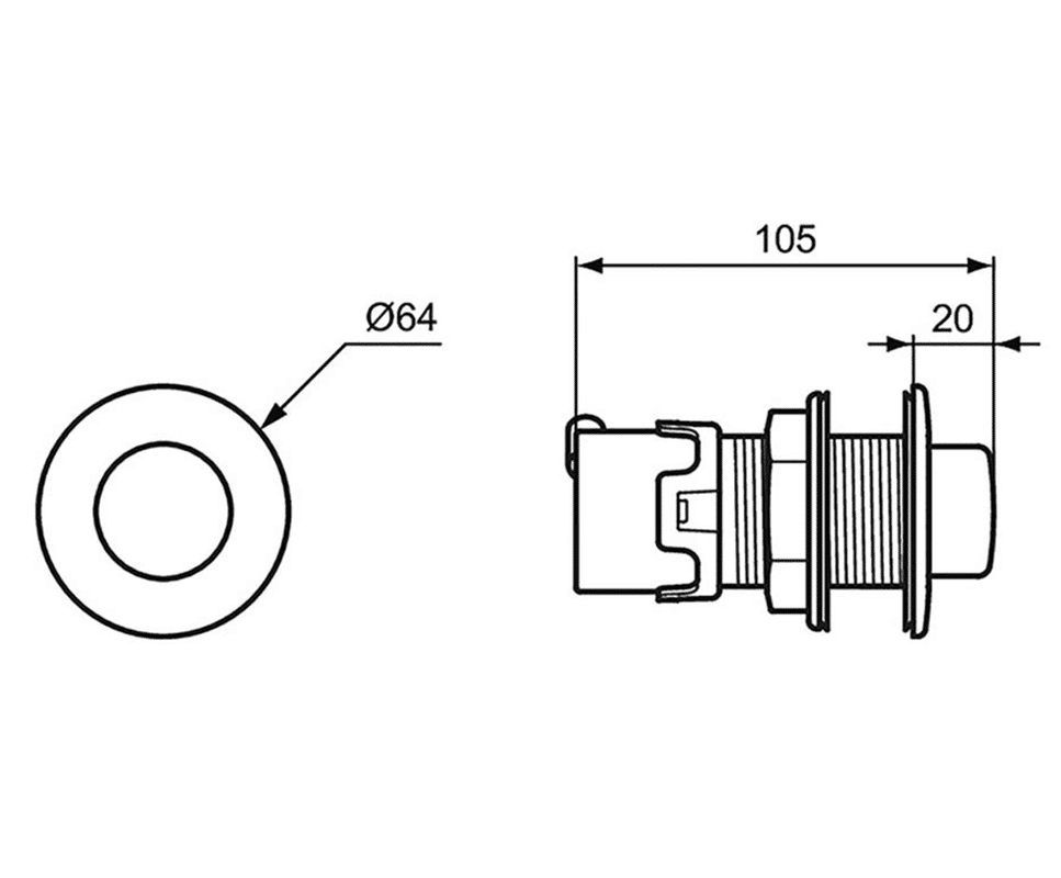 Conceala 3 Flush Buttons - Single Finger Pneumatic Push Button dimensions