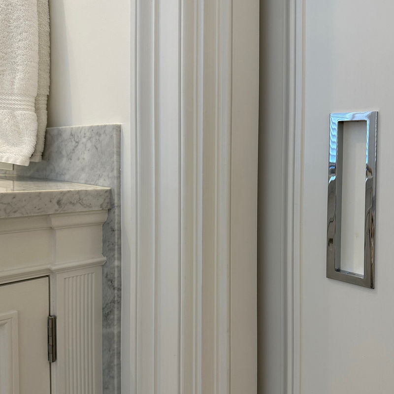 Arbor colour-coated flush door pull handle with polished chrome-plated frame for bathrooms