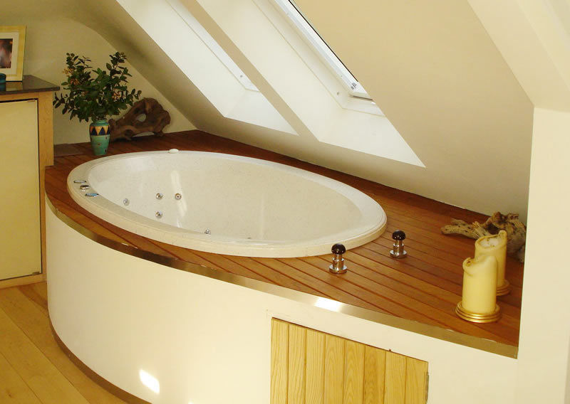 Octavia oval bath, built into a wooden deck